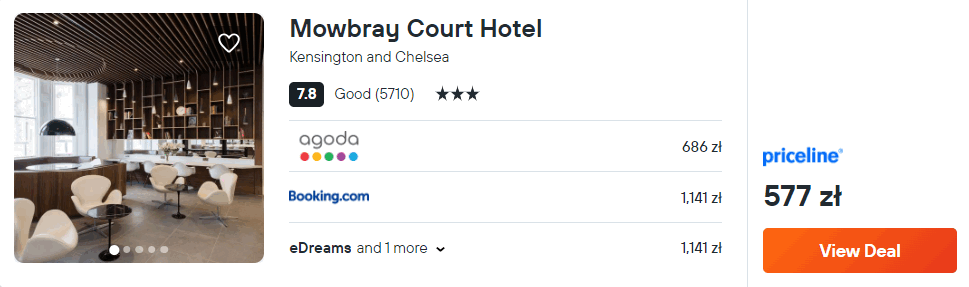 W stolicy Anglii rekomenduję ci pobyt w 3* hotelu Mowbray Court. Każdy pokój jest wyposażony w ogrzewanie, telewizor LCD oraz czajnik elektryczny. W łazience jest prysznic, suszarka do włosów oraz podstawowe przybory toaletowe.