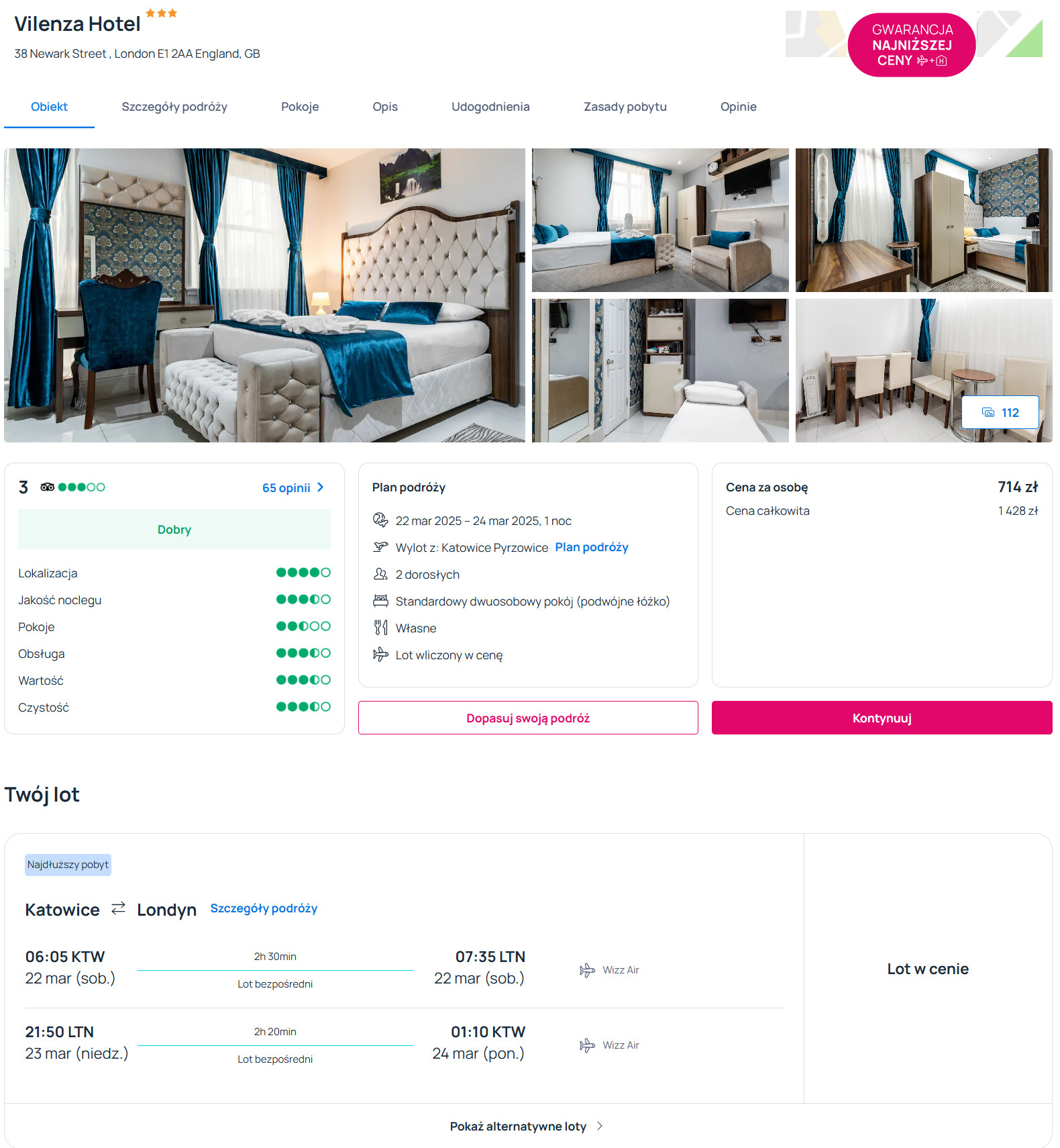 Do Londynu (lotnisko Luton) udasz się w sobotę (22 marca) z portu lotniczego Katowice-Pyrzowice o godzinie 6:05. W drogę powrotną do Polski wyruszysz w niedzielę (23 marca), a wylot zaplanowano na godzinę 21:50. W obie strony podróżować będziesz bezpośrednio linią Wizz Air z bagażem podręcznym.