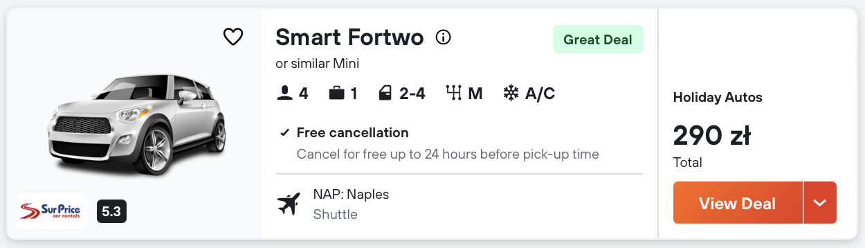 Chcecie zobaczyć więcej? W takim razie wynajmijcie samochód już na lotnisku w Neapolu!