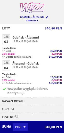 Pamiętajcie, że w najniższej cenie lecicie tylko z małymi bagażami podręcznymi o maksymalnych wymiarach 42 x 32 x 25 cm. Jeden z uczestników podróży musi mieć członkostwo w Wizz Disconut Club. W przeciwnym razie za bilety zapłacicie nieco więcej.