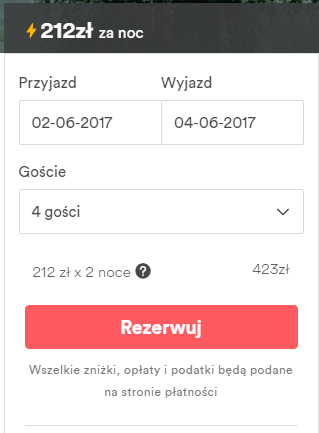 - Zakwaterowanie w domku za 423 PLN/4 osoby/2 noce (106 PLN/osoba)