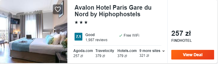 W Paryżu zakwaterowani będziecie w 3* hotelu Avalon Hotel Paris Gare du Nord by Hiphophostels, który znajduje się 5 minut spacerem od dworca kolejowego Gare du Nord. Z lotniska w okolice proponowanego przeze mnie noclegu dojedziecie komunikacją publiczną.