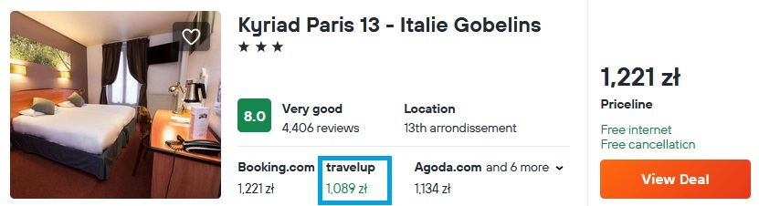 Skorzystaj z pośrednika travelup, aby uzyskać najniższą cenę.