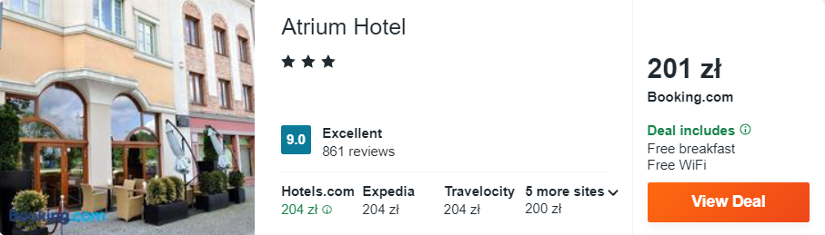 Wszystkie zebrane przeze mnie hotel mogą poszczycić się doskonałą lokalizacją oraz wysoką średnią ocen min. (8,0/10), wynikającą z wielu opinii i recenzji, wystawionych przez dotychczasowych gości. Pokoje w hotelach wyposażone zostały m.in. w klimatyzację lub grzejnik, zestaw do parzenia kawy lub herbaty, telewizor oraz łazienkę z bezpłatnym zestawem kosmetyków dla gości.