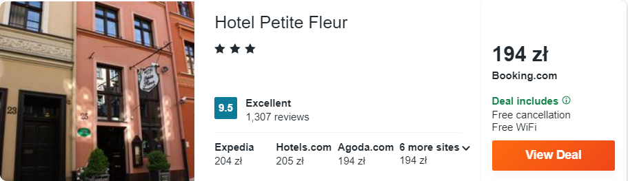 Dowiedzcie się więcej o tym hoteluUdając się do Torunia, rozważcie ofertę pobytu w gustownym – 3* hotelu Petite Fleur. Obiekt znajduje się w samym sercu starego miasta, zaledwie 120 metrów od wpisanego na listę światowego dziedzictwa UNESCO Rynku Staromiejskiego.