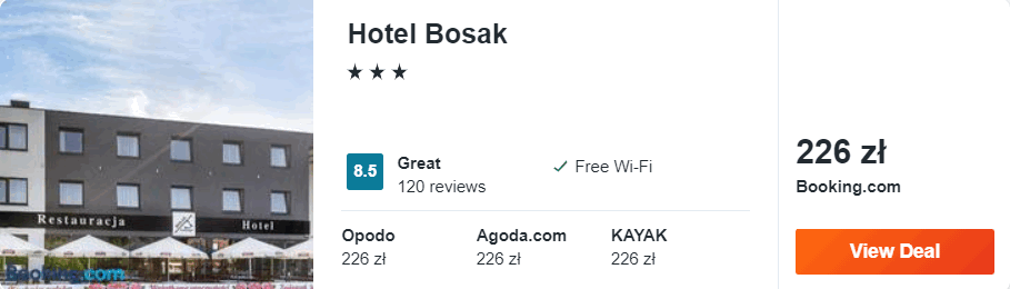Dowiedzcie się więcej o tym hoteluPrzy zachodniej granicy wybrałem dla was ofertę pobytu w 3* hotelu Bosak, który mieści się w spokojnej części Szczecina, a od szczecińskiej Gubałówki oddalony jest o ok. 3 km. Wszystkie pokoje zostały urządzone w nowoczesnym stylu i wyposażone w łazienkę z prysznicem.