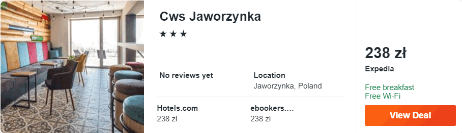 Na letnią wycieczkę w doskonałym terminie obejmującym weekend (sobota-niedziela) będziecie mogli wybrać się do Jaworzynki, Olsztyna, Poznania, Stronia Śląskiego, Szaflarów, Szczecina oraz Świnoujścia. Za pobyt w doskonałych warunkach dla dwóch osób w dacie 28-29 sierpnia zapłacicie już od 209 PLN/pokój.