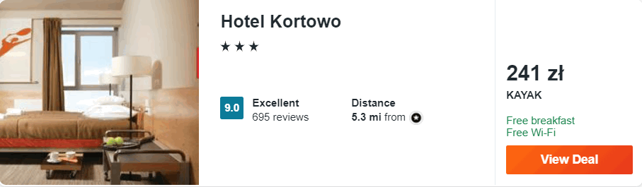 Dowiedzcie się więcej o tym hoteluNatomiast w stolicy województwa wielkopolskiego rekomenduję wam pobyt w 3* hotelu Kortowo. W cenie pobytu goście do swojej dyspozycji mają aż 7 kortów tenisowych, a w każdym z pokoi znajduje się element wystroju nawiązujący do gry w tenisa. Ponadto w cenie zapewnione będziecie mieli codzienne śniadania.