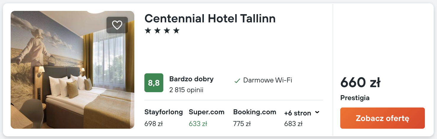W Tallinie zatrzymasz się w 4* Centennial Hotel, który położony jest niedaleko centrum miasta. Na miejscu znajdziesz restaurację oraz strefę spa i centrum odnowy biologicznej.