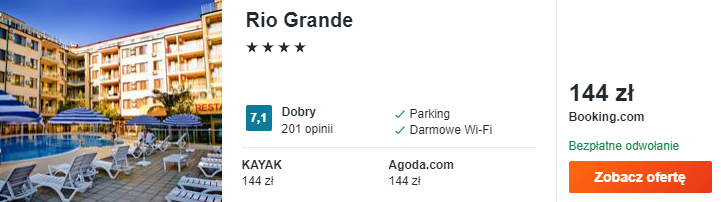 Dowiedzcie się więcej o tym hoteluW Słonecznym Brzegu postawcie na 4* hotel Rio Grande. Na miejscu do waszej dyspozycji będą klimatyzowane pokoje oraz odkryty basen.