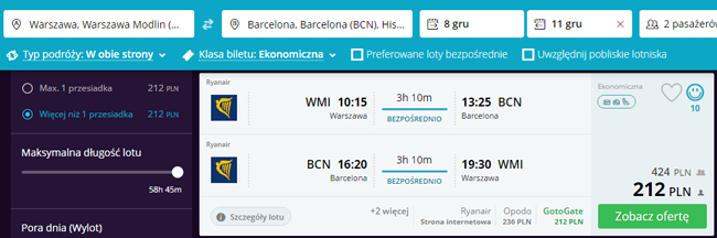 - Loty z Warszawy (Modlina) do Barcelony za 424 PLN (212 PLN/osoba)