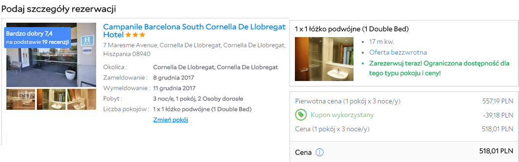 - Zakwaterowanie w Campanile Barcelona Sud Cornella za 518 PLN/2 osoby/3 noce (259 PLN/osoba)