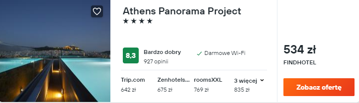 Wybrałem dla was noclegi w 4* hotelu Athens Panorama Project. Najmocniejszym punktem programu zdecydowanie będzie tu widok z tarasu – zobaczcie sami, jak wspaniale prezentuje się on na zdjęciach!