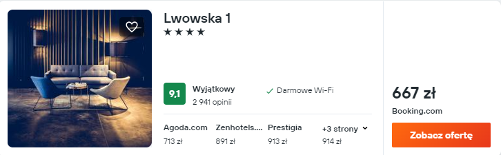 Wybrałem noclegi w bardzo dobrze ocenianym 4* hotelu Lwowska 1. Znajduje się on w zabytkowym centrum miasta i będzie doskonałą bazą wypadową w czasie wycieczki.