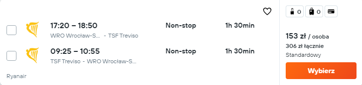 Do Włoch udacie się w terminie 6 – 9 sierpnia. Czeka was bezpośredni lot z Wrocławia do Treviso, realizowany na pokładzie samolotu linii lotniczej Ryanair.