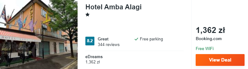 Na miejscu wybrałem dla was noclegi w hotelu Amba Alagi. Będzie to dobre miejsce na wypoczynek oraz dogodna baza wypadowa do odkrywania uroków Wenecji oraz okolicy.