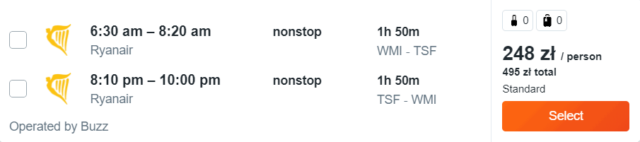 Na wycieczkę do Włoch wybrać się będziecie mogli w dogodnym terminie obejmującym ostatni weekend października (piątek-niedziela). Na lotnisko Wenecja Treviso udacie się z warszawskiego portu lotniczego w Modlinie. W obie strony polecicie bezpośrednio na pokładzie samolotu linii Ryanair. Bez dodatkowych kosztów zabrać ze sobą będziecie mogli tylko mały bagaż podręczny – w który bez problemu spakujecie się na 2-dniowy wyjazd.