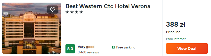 Po wylądowaniu w Weronie zatrzymaj się w bardzo dobrze ocenianym 4* hotelu znanej sieci Best Western. Będzie to dobre miejsce na odpoczynek po podróży.
