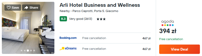 Natomiast w Bergamo postaw na zlokalizowany w centrum miasta 3* hotel Arli.Na terenie obiektu znajdziesz strefę spa, restaurację, bar oraz siłownię.
