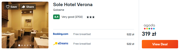 W Weronie zatrzymaj się w bardzo dobrze ocenianym 3* hotelu Sole. Obiekt oferuje swoim gościom między innymi room service, dostęp do baru oraz komfortowe pokoje wyposażone w bezpłatne WiFi i telewizję kablową.