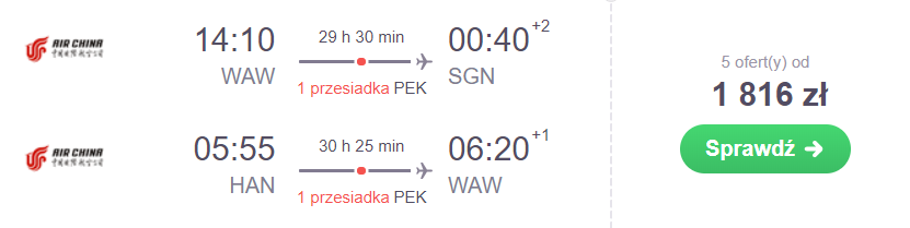 Główna podróż to przeloty 21-31 października na trasie Warszawa-Ho Chi Minh/Hanoi-Warszawa W obie strony będziecie podróżować na pokładach samolotów linii Air China z długimi, ponad 10-godzinnymi przesiadkami w Pekinie. Ten czas proponuję wam wykorzystać na zwiedzanie stolicy Państwa Środka. Dokonacie tego na wizie tranzytowej!. W podróż możecie zabrać dwie sztuki bagażu, jedną podręcznego i drugą rejestrowanego.