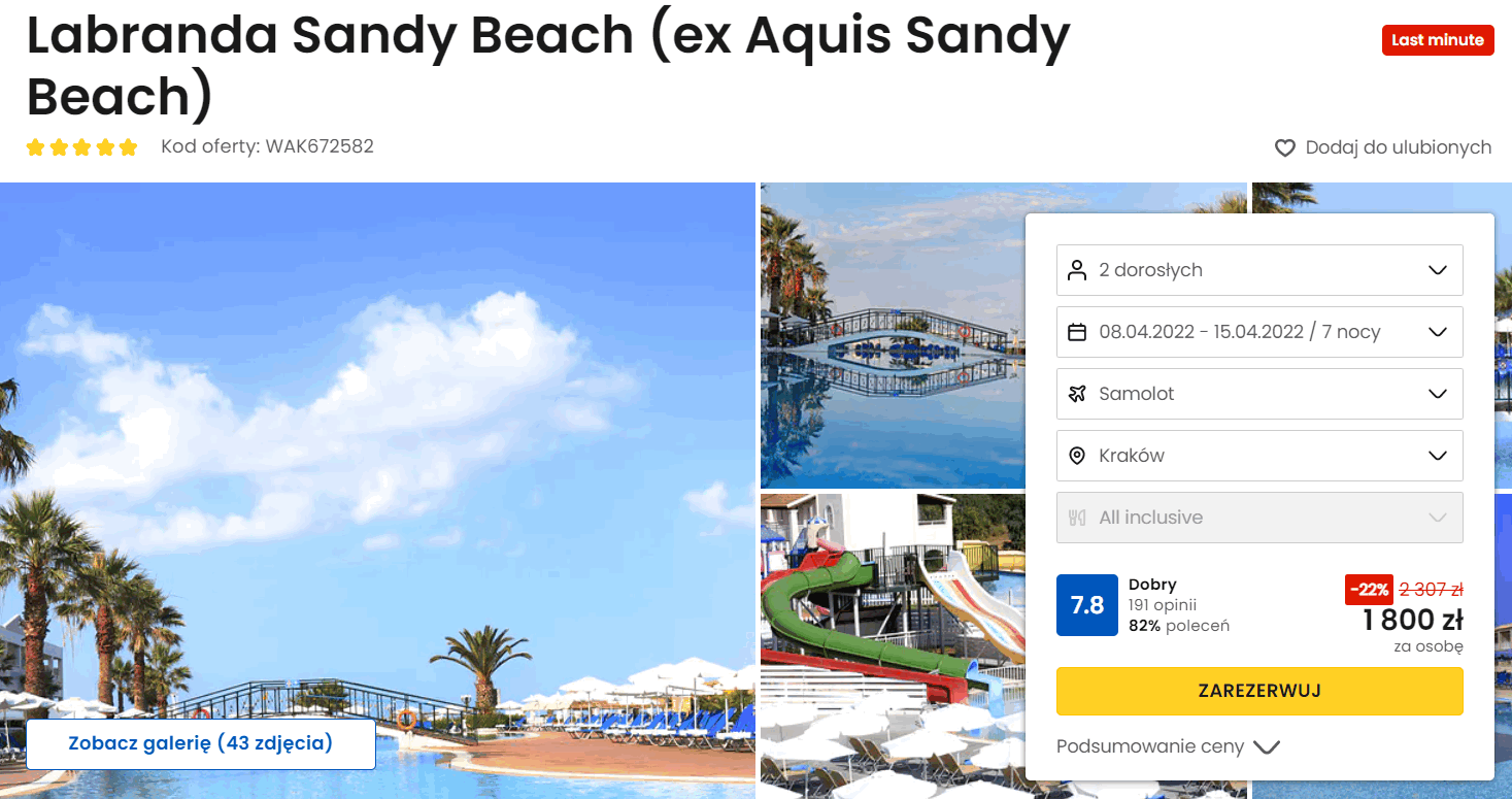Na grecką wyspę udacie się 8 kwietnia z krakowskiego lotniska w Balicach, a do kraju wrócicie tuż przed Świętami Wielkanocnymi (15.04). W cenie pakietu zabrać ze sobą będziecie mogli tylko mały bagaż podręczny, za ten nadawany do luku będziecie musieli zapłacić (479 PLN/2 bagaże/lot w dwie strony).