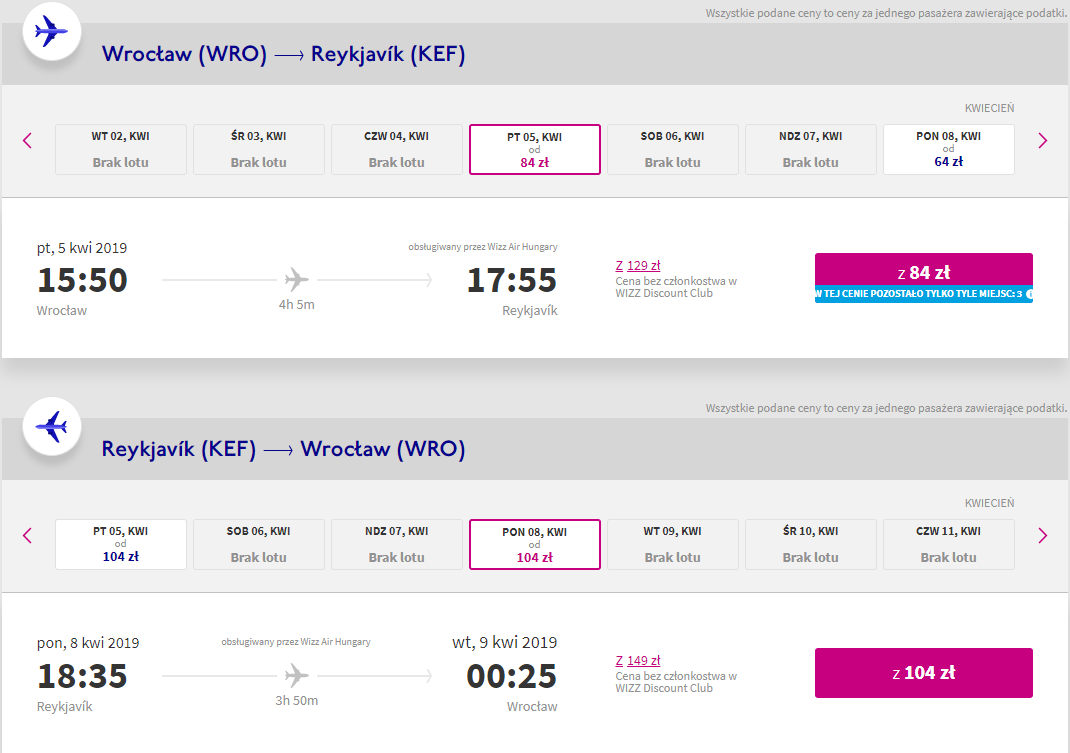 Przeloty realizowane są na pokładzie węgierskiej linii lotniczej Wizz Air. Aby uzyskać taką cenę, musisz być członkiem Wizz Discount Club.