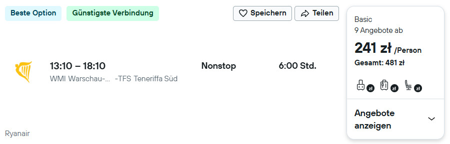 Na „Kanary” polecisz linią Ryanair, a do Polski wrócisz samolotem linii Wizz Air. W obu przypadkach przeloty są bezpośrednie. Do zakupu biletów nie potrzebujesz żadnych klubów zniżkowych. Szczegółowe informacje na temat samego rejsu znajdziesz poniżej.