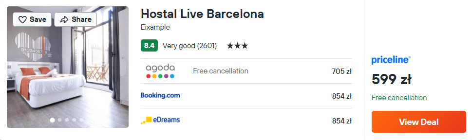 Natomiast w Barcelonie rozważ pobyt w 3* Hostal Live, który znajduje się w sąsiedztwie stacji metra Urgell. W każdym pokoju jest łazienka z prysznicem.