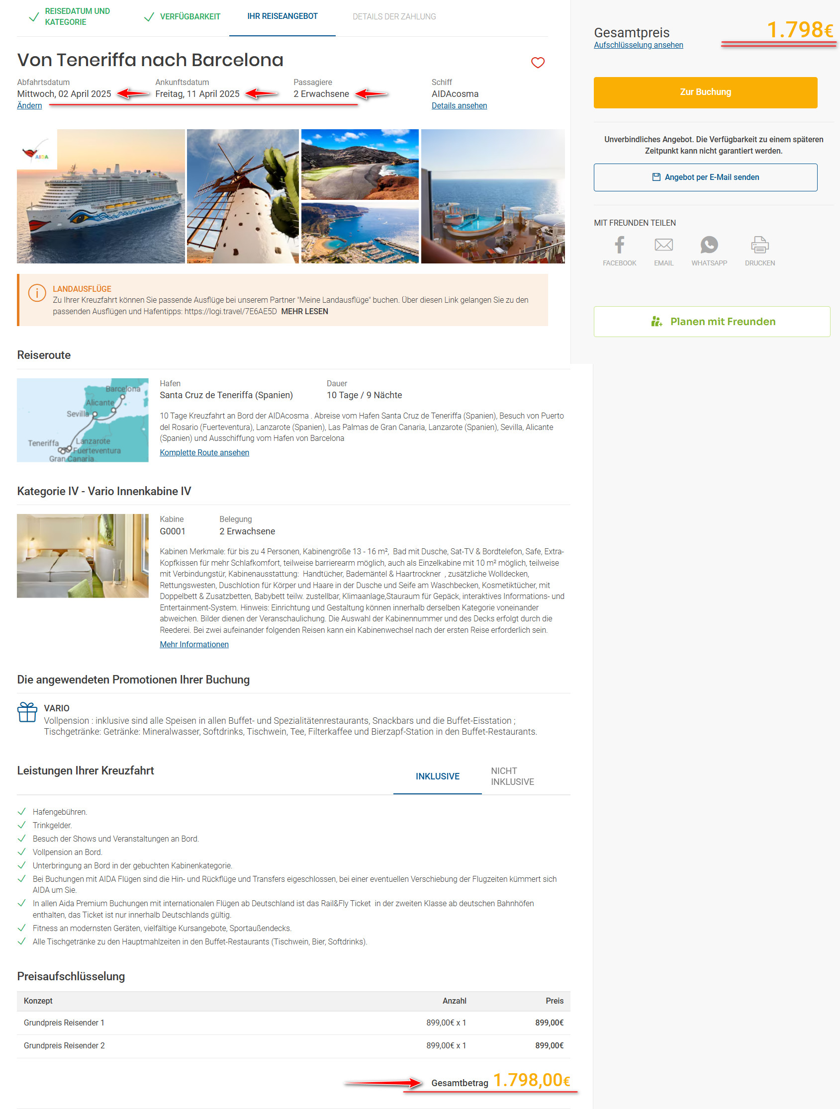 Ważne! Posiłki (w każdej restauracji specjalistycznej) wliczone są w cenę rejsu, natomiast za napoje trzeba dodatkowo zapłacić. Pełną ofertę, szczegółowy plan podróży oraz plan każdego pokładu znajdziesz na stronie AIDA.de. Natomiast wiele przydatnych informacji na temat rejsów AIDĄ dostępnych jest w tym wątku na forum.