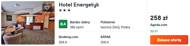 Jeśli wybierasz się do uzdrowiska Iwonicz-Zdrój, polecam 3* Hotel Energetyk. Na gości czekają komfortowe pokoje wyposażone w bezpłatne WiFi i klimatyzację oraz strefa spa.