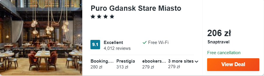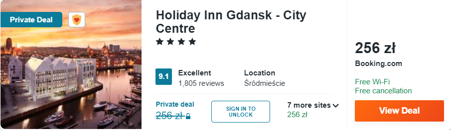 Dowiedzcie się więcej o tym hoteluNa sam koniec mam dla was ponownie ofertę noclegów w Gdańsku. Tym razem zakwaterowani będziecie w 4* hotelu Holiday Inn. Położony jest on na Wyspie Spichrzów, w odległości 450 metrów od Długiego Targu. Na miejscu na gości czeka bezpłatny dostęp do sieci WiFi oraz dobrze wyposażona sala fitness.