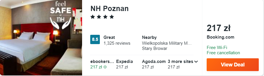 Dowiedzcie się więcej o tym hoteluNatomiast tam, gdzie bodą się koziołki, proponuję wam zakwaterowanie w 4* hotelu NH Poznań. Obiekt położony jest w sąsiedztwie głównego dworca kolejowego w Poznaniu oraz 10 minut spacerem od Starego Rynku.