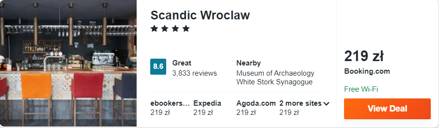 Dowiedzcie się więcej o tym hoteluSpędzając weekend w polskiej Wenecji, proponuję wam noclegi w samym sercu miasta w 4* hotelu Scandic Wrocław. Goście na terenie całego obiektu mogą korzystać z bezpłatnego dostępu do sieci WiFi.