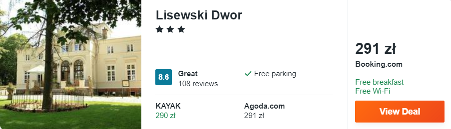 Dowiedzcie się więcej o tym hoteluWracamy bliżej wybrzeża, do Gniewina, gdzie proponuję wam noclegi z codziennymi śniadaniami w Lisewskim Dworze. Na miejscu zakwaterowani będziecie w dwuosobowym pokoju, których wnętrza inspirowane są stylem rokoko. W każdym mieści się łazienka z prysznicem, a na goście czeka darmowy parking oraz bezpłatny dostęp do sieci WiFi.