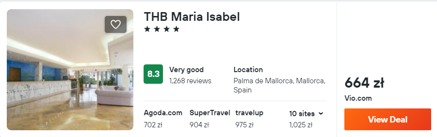 Za loty w obie strony oraz zakwaterowanie w hotelu zapłacisz 689 PLN za osobę, przy 2 podróżnych zatrzymujących się w jednym miejscu.