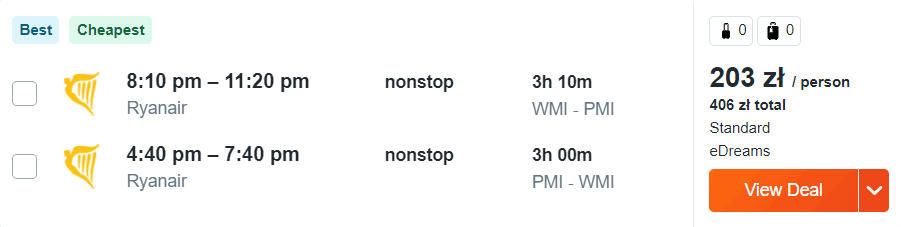 Na hiszpańską wyspę udacie się na przełomie marca i kwietnia (31.3-.7.4). Wycieczkę rozpoczniecie i zakończycie na warszawskim lotnisku w Modlinie. W obie strony podróżować będziecie bezpośrednio na pokładach samolotów linii Ryanair z wliczonym małym bagażem podręczny, a za bilety zapłacicie 203 PLN/osoba.