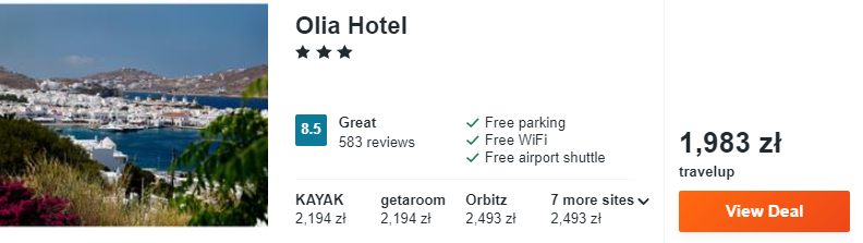 Mykonos to wyspa, którą szczególnie upodobali sobie znani i bogaci ludzie. Nic dziwnego, że w sezonie ceny zakwaterowania osiągają niebotyczne poziomy. Skorzystajcie z okazji i zatrzymajcie się w położonym tuż obok wybrzeża 3* hotelu Olia. Będzie to świetna baza wypadowa do odkrywania uroków wyspy.