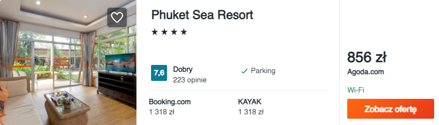 Na miejscu zatrzymacie się w świetnie ocenianym 4* hotelu Phuket Sea Resort. Czekają na was komfortowe pokoje z prywatnymi łazienkami, basen zewnętrzny, siłownia i pralnia. W cenę wliczono przepyszne śniadania.