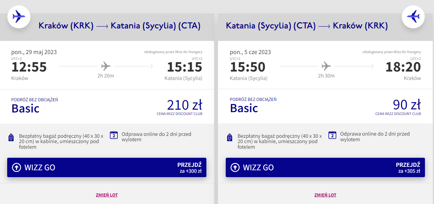 Do Włoch udasz się w terminie 29 maja – 5 czerwca. Czeka cię bezpośredni lot z Krakowa, realizowany na pokładach samolotów linii lotniczych Wizz Air. Bilety w najniższej cenie dostępne są dla członków Wizz Discount Club. Bez dodatkowych kosztów zabierzesz ze sobą mały bagaż podręczny.