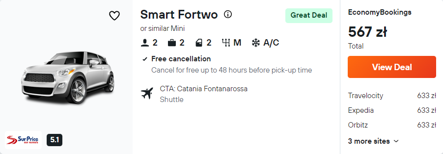 Jeżeli masz ochotę zwiedzić większą część wyspy, to polecam wypożyczyć samochód już na lotnisku w Katanii.