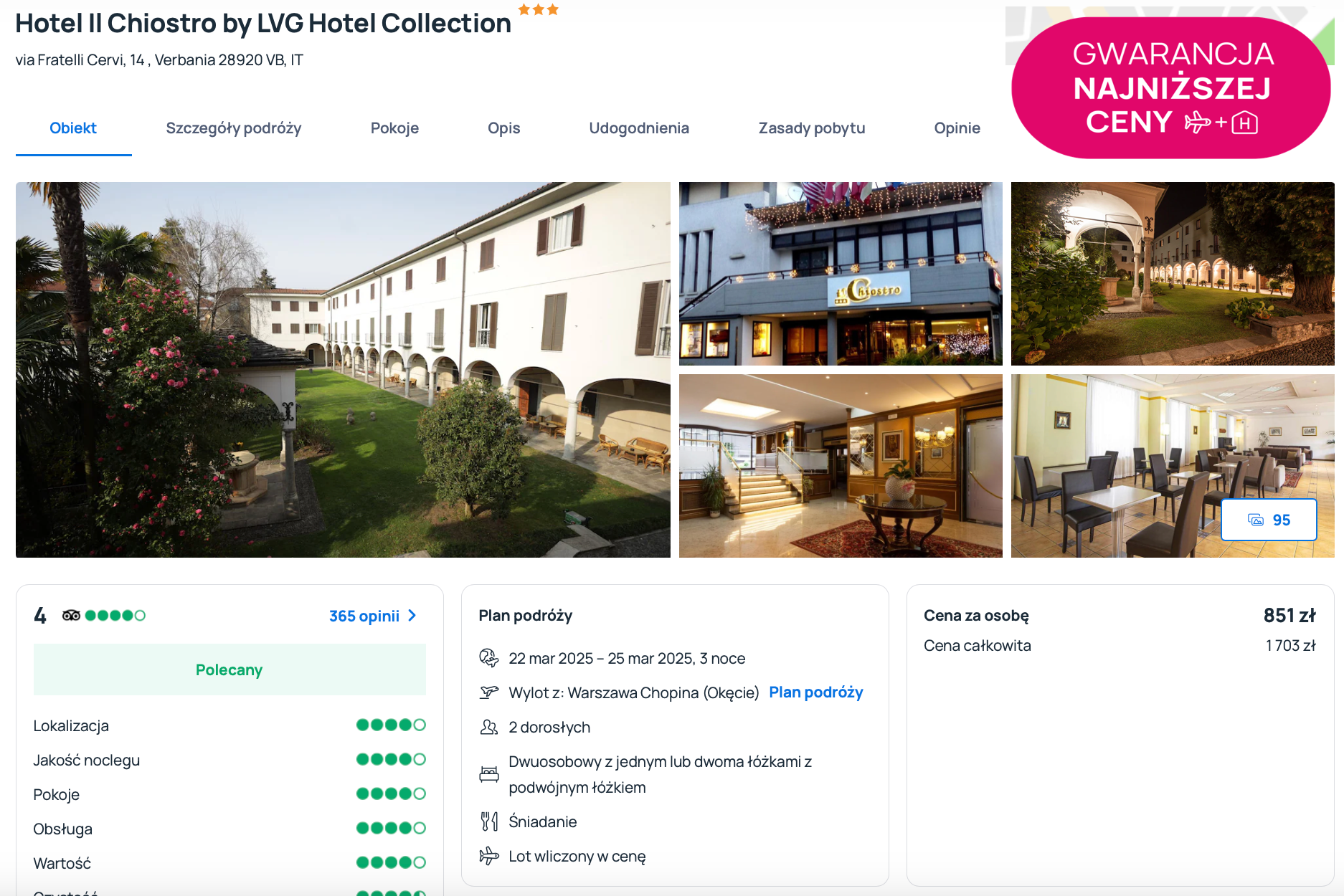 Do Bergamo polecisz się z Warszawy w terminie 22-25 marca (sobota-wtorek). Czeka cię podróż Wizz Air z bagażem podręcznym. Nad jezioro dojedziesz wypożyczonym samochodem.