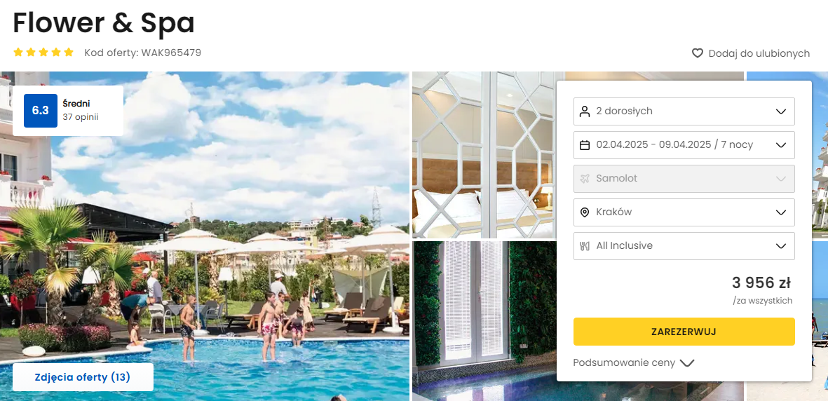 Spędzisz tydzień w 5* hotelu Flower & Spa, który oferuje komfortowo wyposażone pokoje, basen, strefę wellness oraz zielony ogród. Plaża w znanym kurorcie Golem znajduje się w odległości krótkiego spaceru od obiektu.