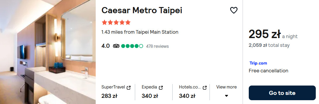 Natomiast w Tajpej postaw na pobyt w 5* hotelu Caesar Metro Taipei, z odkrytym basenem. Znajduje się on w sąsiedztwie stacji metra Longshan Temple. Każdy pokój składa się z części do relaksu i spania oraz łazienki. Na miejscu zapewniony będziesz miał dostęp do sieci WiFi.