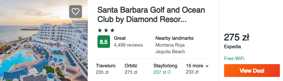 Na Teneryfie zatrzymajcie się w obiekcie Santa Barbara Golf and Ocean Club by Diamond Resorts, który cieszy się świetnymi opiniami wśród dotychczasowych gości. Hotel znajduje się tuż przy plaży, a dla gości udostępnia m.in. dwa odkryte baseny, bar oraz restaurację.