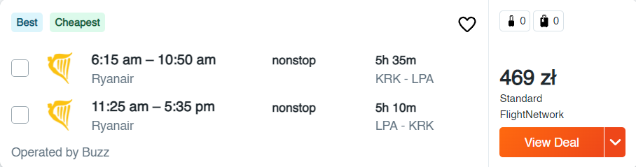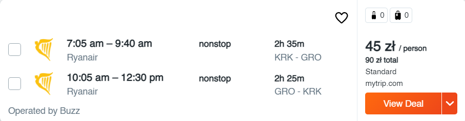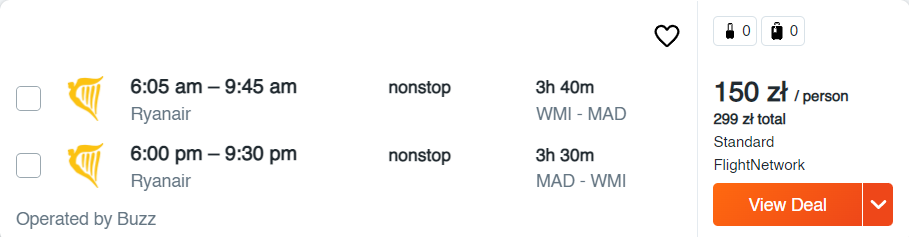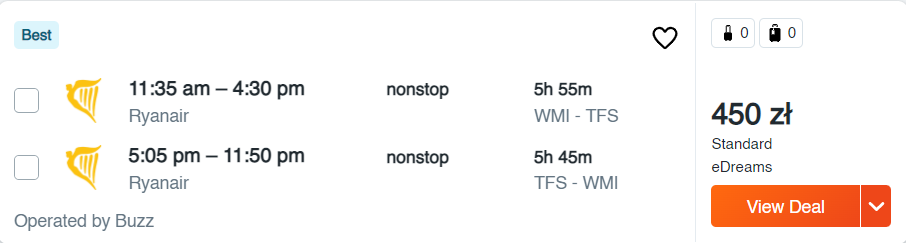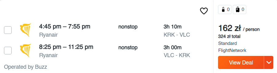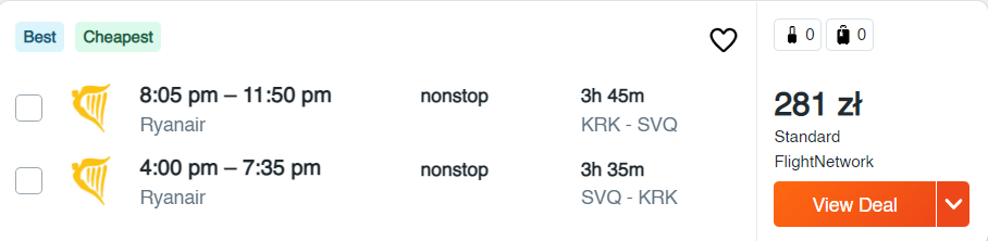 Wszystkie poniższe loty to bezpośrednie podróże na pokładzie samolotów linii lotniczej Ryanair. Możecie wybrać się do: Barcelony, Madrytu, Reus, Girony, Sewilli, Walencji, Alicante, na Gran Canarię, Teneryfę i Majorkę. Nie zwlekajcie jednak z rezerwacjami – najtańsze bilety do Hiszpanii dostępne są od 45 PLN/osobę.