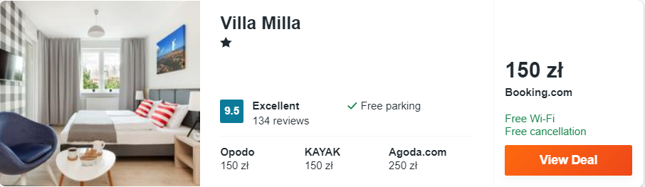 Na początek mam dla was ofertę zakwaterowania w wyjątkowej Villi Milla. Obiekt od miejskiej plaży w Łebie oddalony jest o nieco ponad 2 km. Na miejscu goście skorzystać mogą z bezpłatnego wynajmu rowerów.