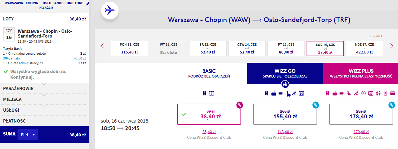 Pamiętajcie, że obniżka dotyczy ceny podstawowej, a nie podatków i opłat. Bez dodatkowych opłat podróżować będziecie z bagażem podręcznym o maksymalnych wymiarach 55 x 40 x 23 cm i wadze do 10 kg. Za bilety zapłacicie dowolną kartą płatniczą lub przelewem bankowym. Najtańsze bilety dostępne są za nieco ponad 38 PLN: