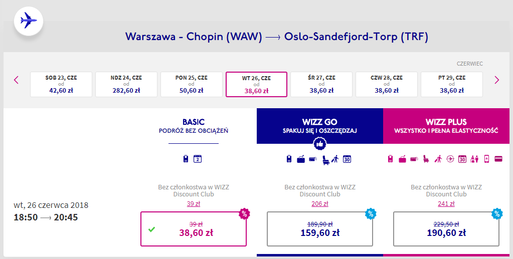 - zniżka dostępna jest dla członków Wizz Discount Club;