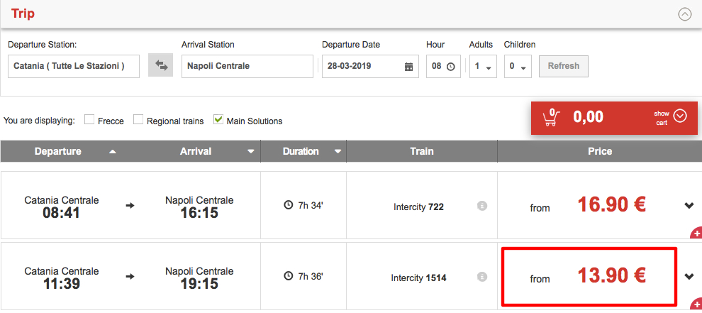 Trenitalia | Katania – Neapol | 13,90 EUR ok. 60 PLN | 28, 29 marca